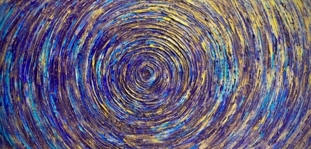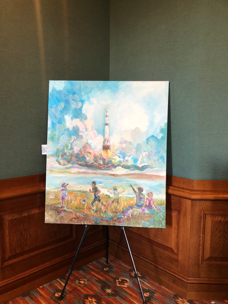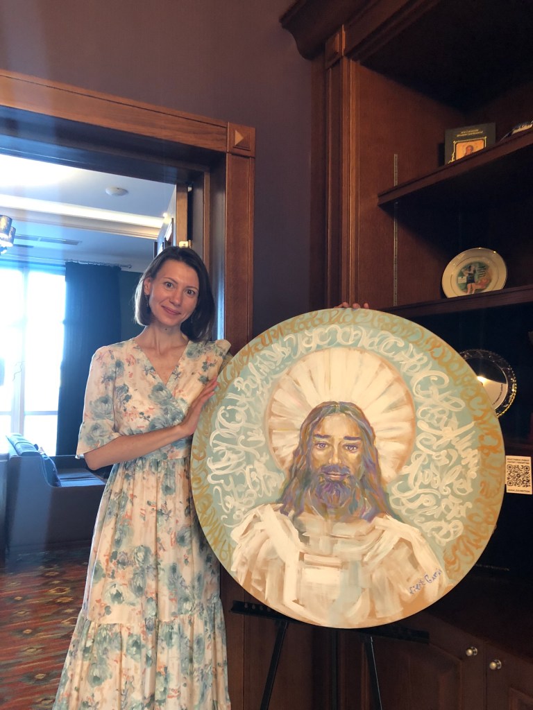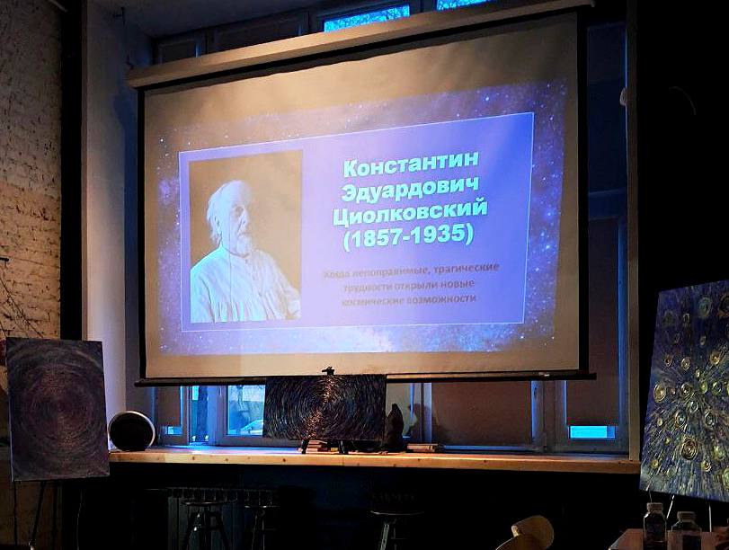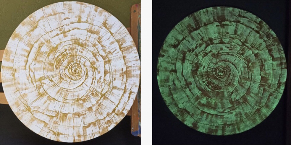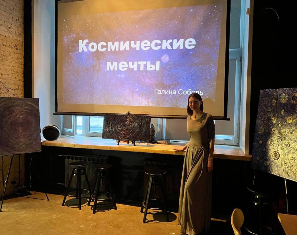 Также Юлия представила свою картину «Солнце» из новой космической серии, работа также выполнена в авторской технике с использованием акрила, пасты и специальных красок. Отличительный эффект — картина светится в темноте.