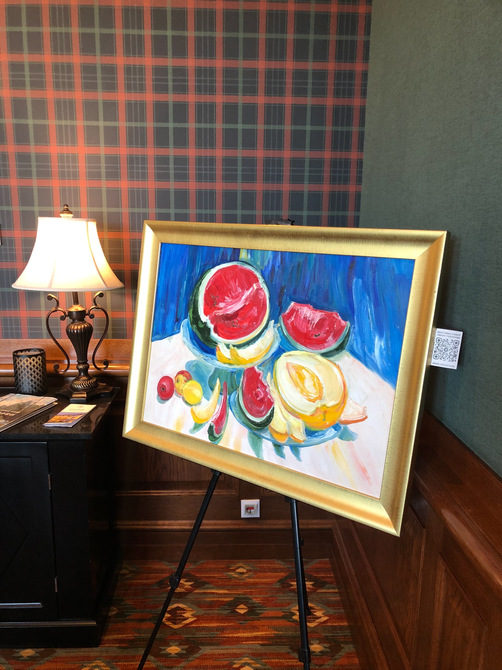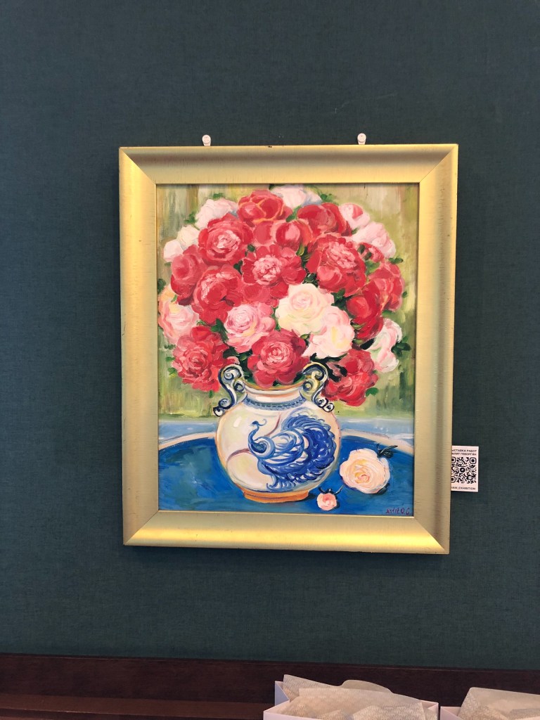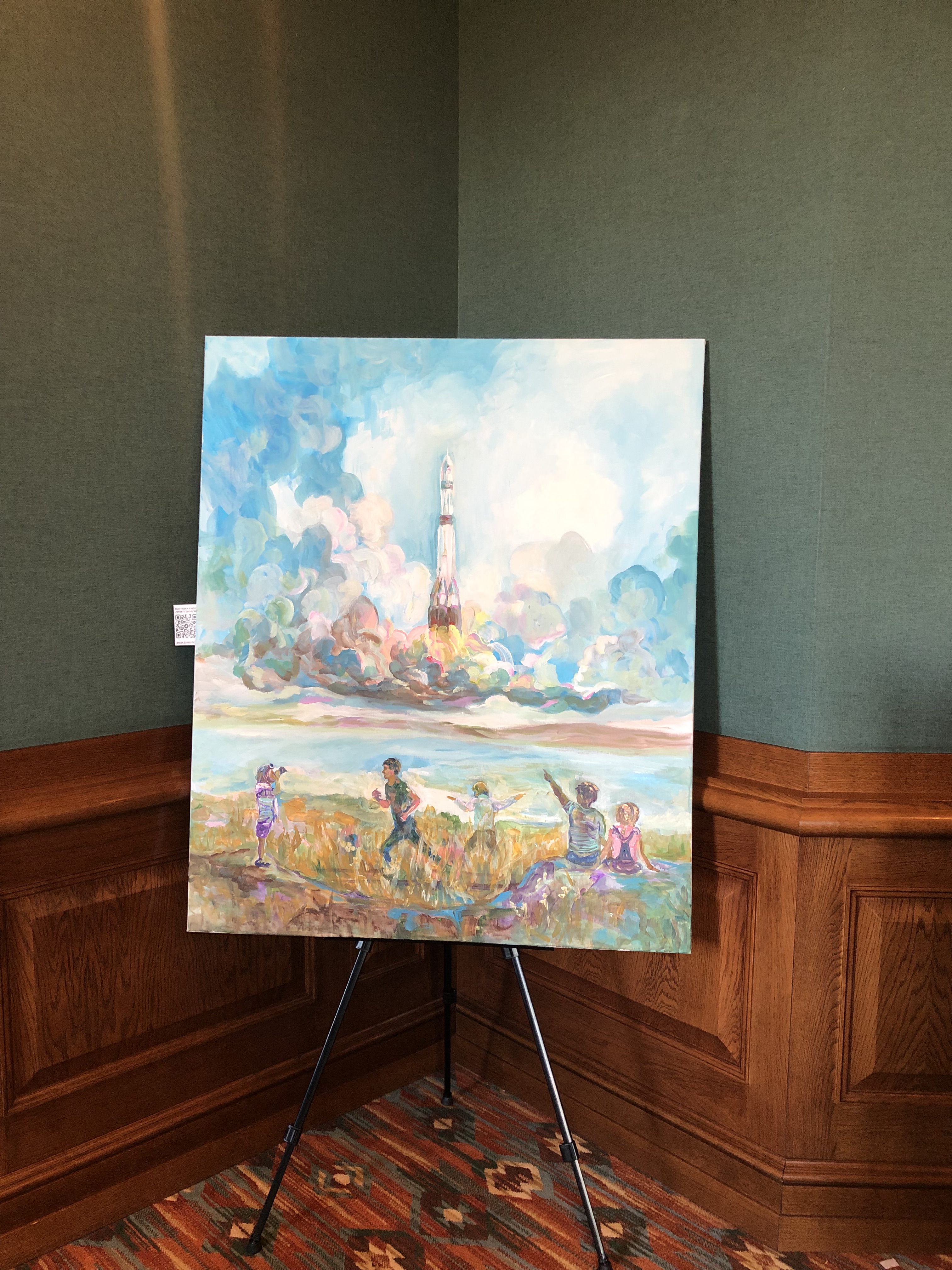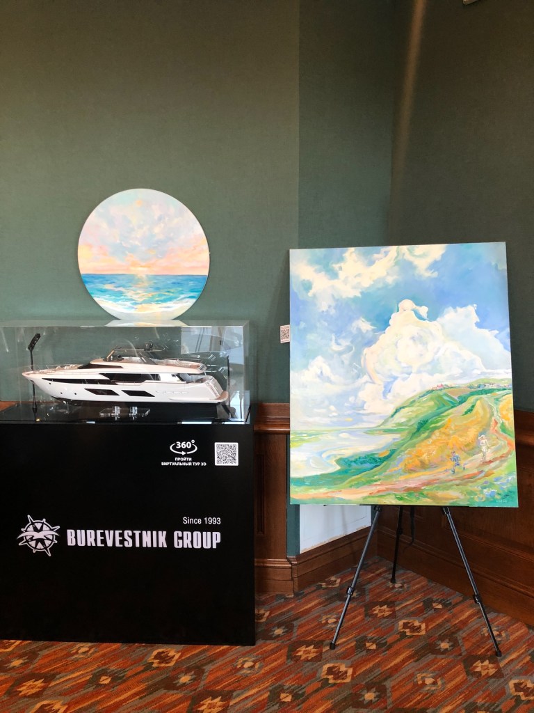 В этот раз я тоже была с картиной, на закрытии сезона мне захотелось представить свою живописную работу «Лабиринт жизни», может потому, что гольф-поле напоминает мне такой лабиринт. Картина была написала ещё в 2010 году для первой тогда для меня галерейной выставки с названием Belle Fleur. Эта работа была опубликована в американском международном каталоге современных художников ICM IV и позже в моем арт издании IAM. Подробнее о картине можно почитать здесь.