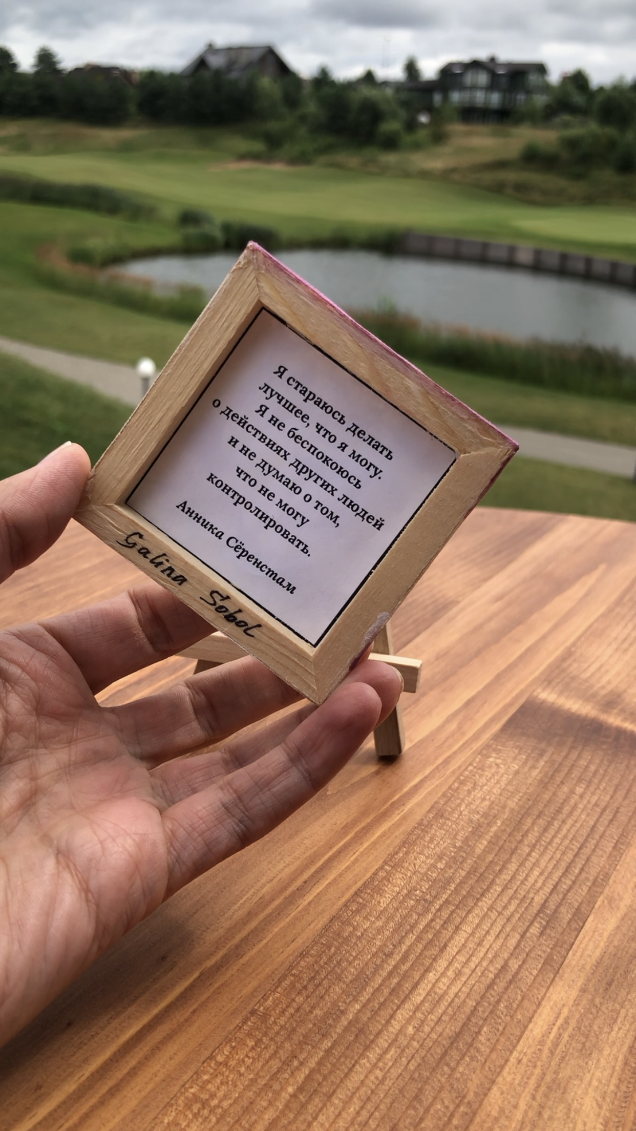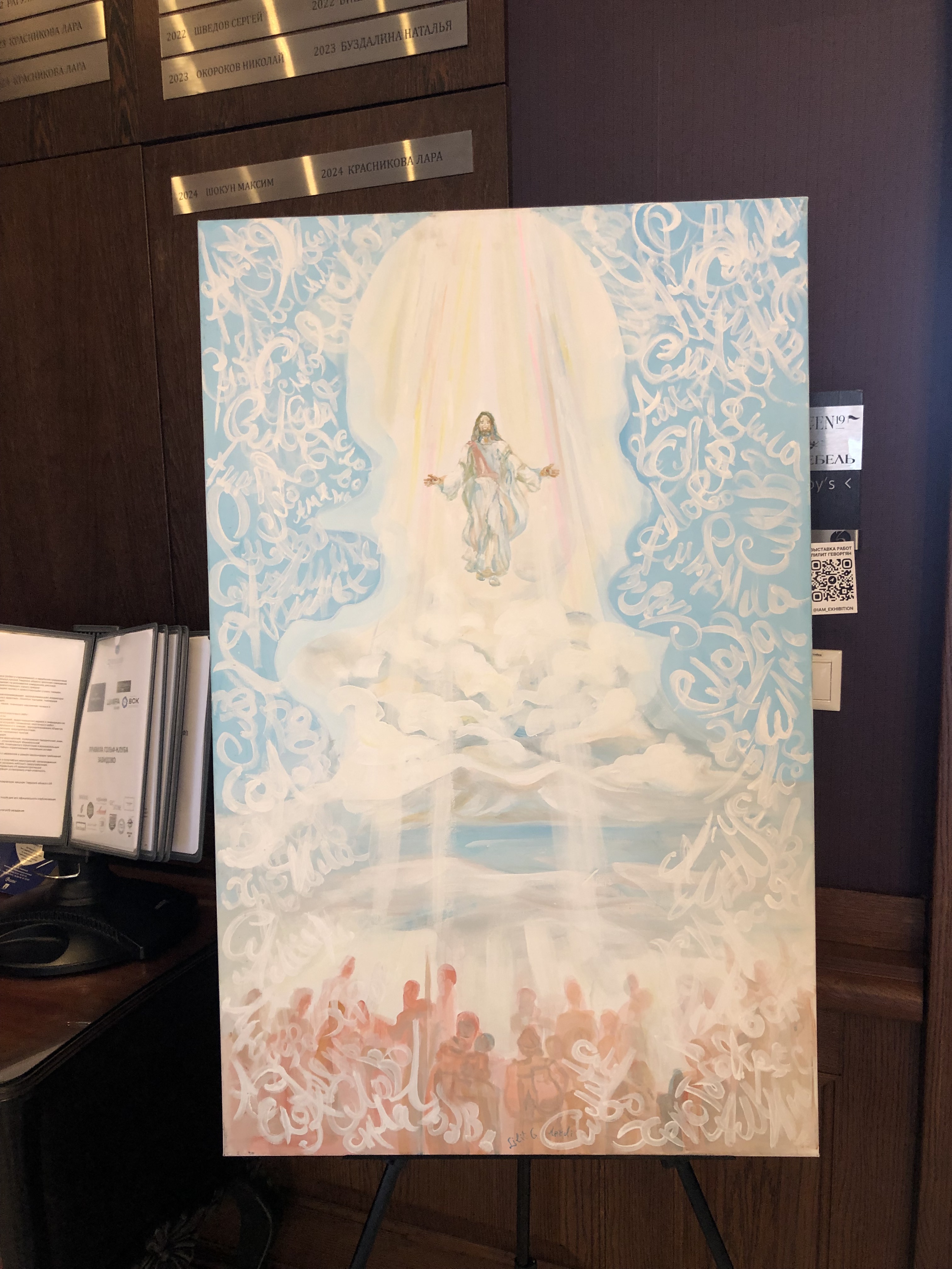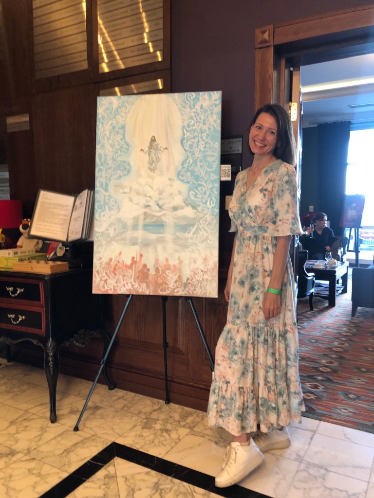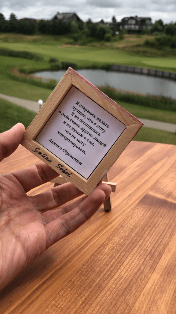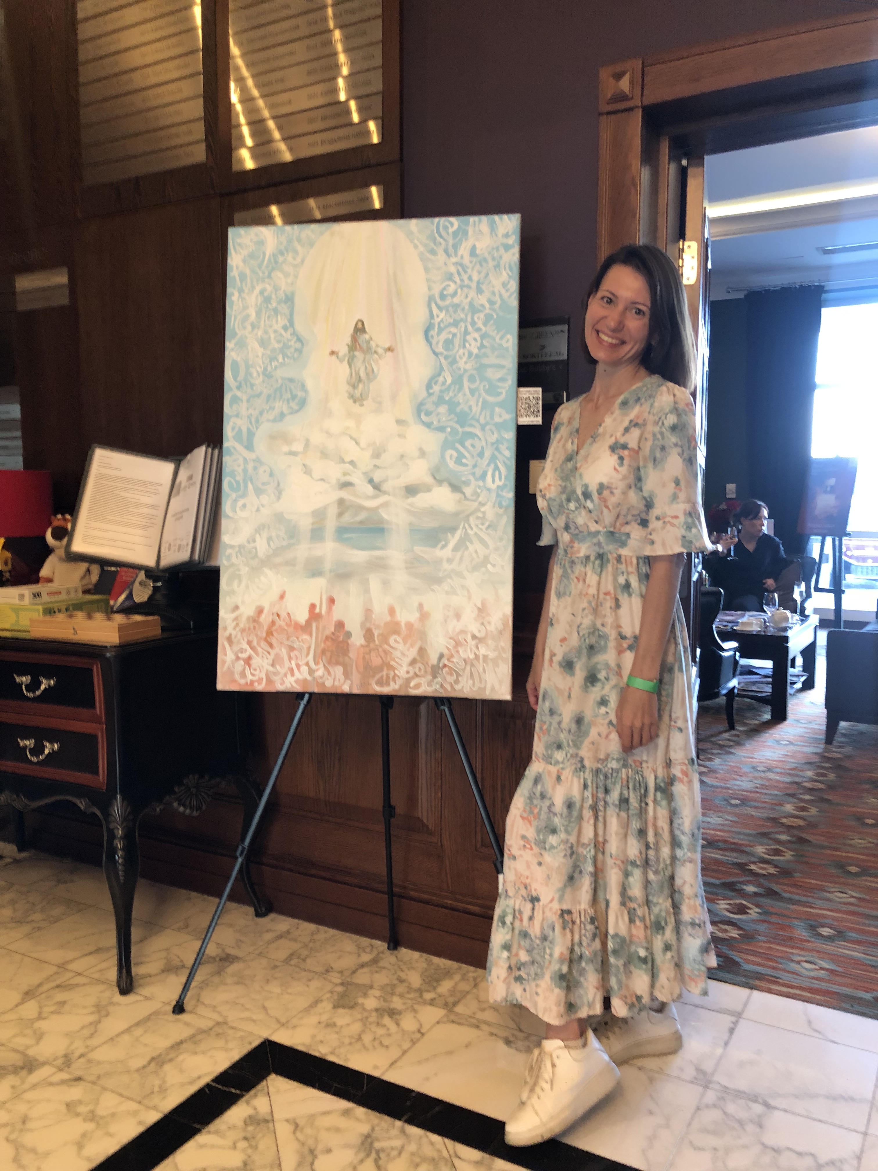 В этот раз я тоже была с картиной, на закрытии сезона мне захотелось представить свою живописную работу «Лабиринт жизни», может потому, что гольф-поле напоминает мне такой лабиринт. Картина была написала ещё в 2010 году для первой тогда для меня галерейной выставки с названием Belle Fleur. Эта работа была опубликована в американском международном каталоге современных художников ICM IV и позже в моем арт издании IAM. Подробнее о картине можно почитать здесь.