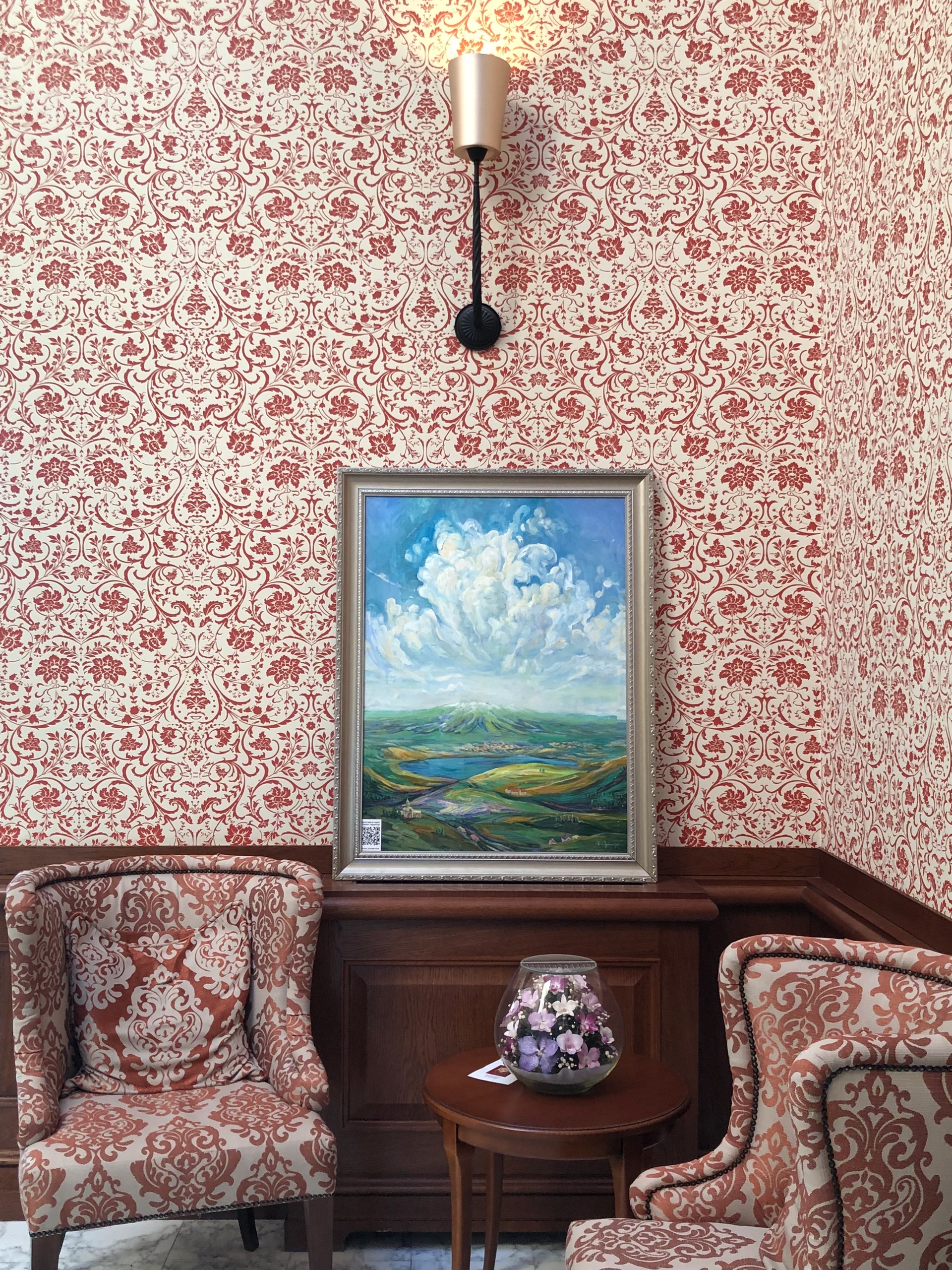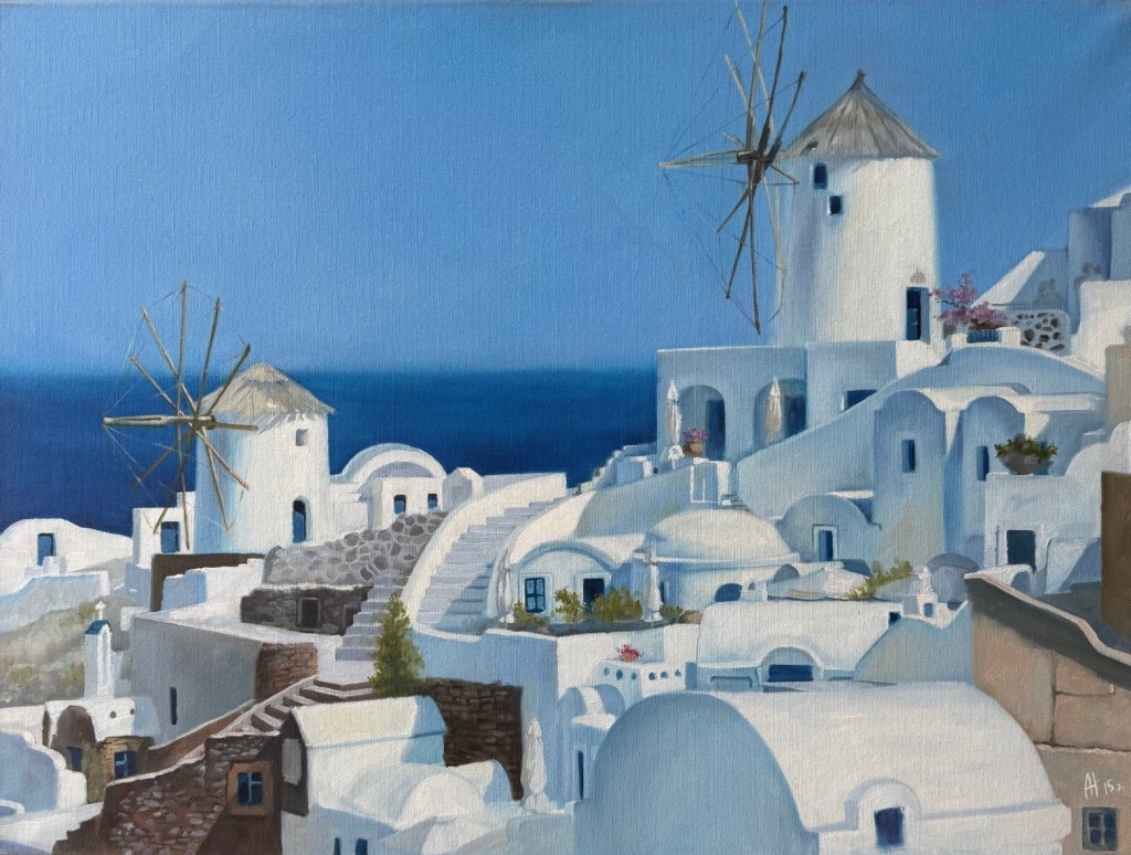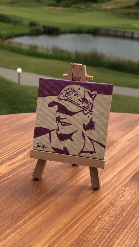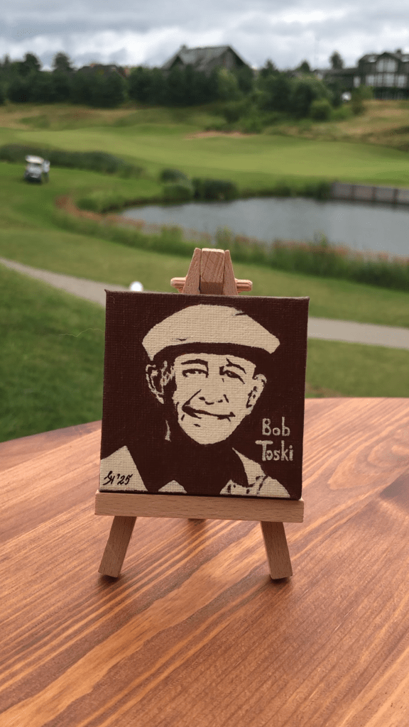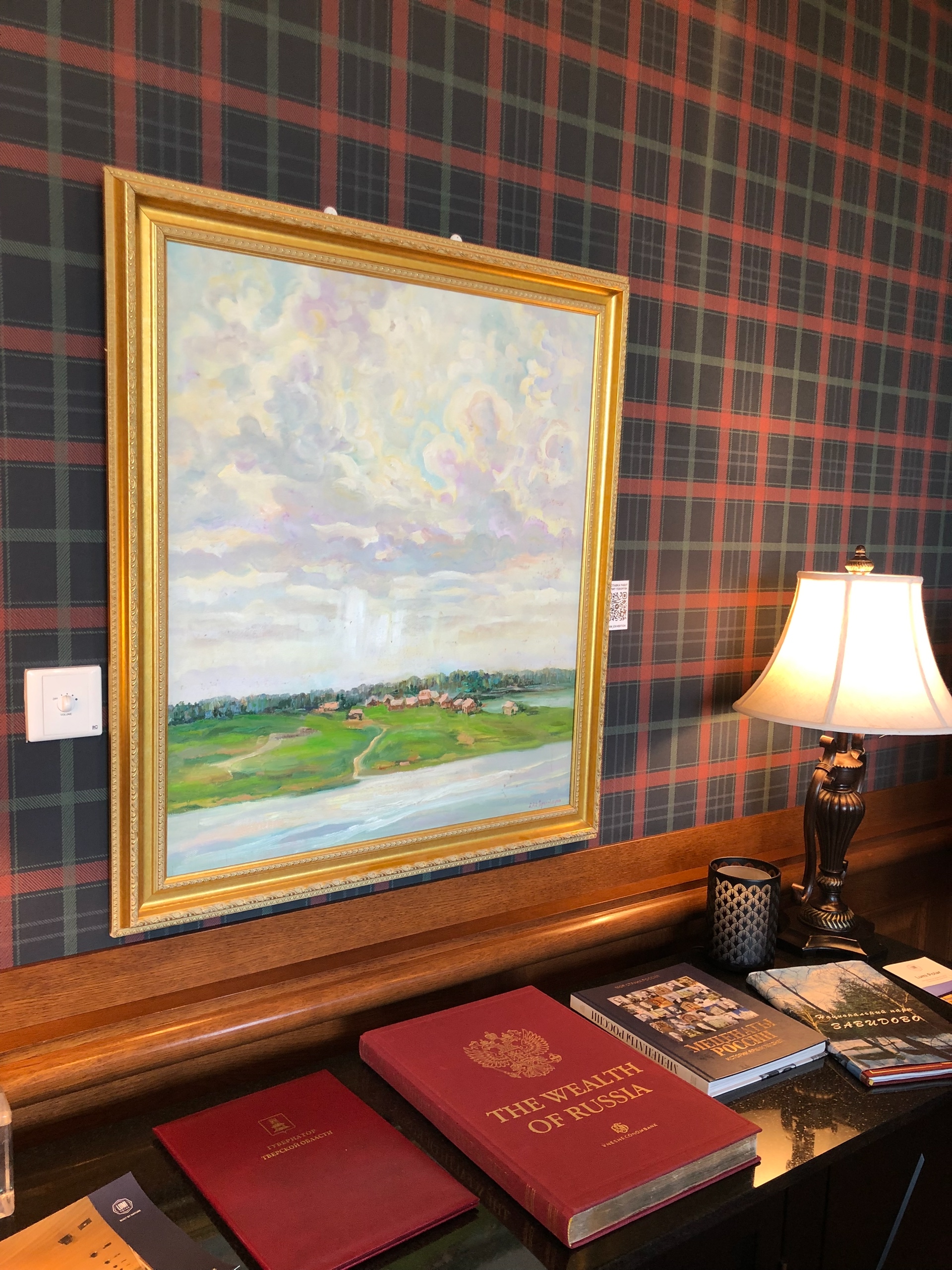 В этот раз я тоже была с картиной, на закрытии сезона мне захотелось представить свою живописную работу «Лабиринт жизни», может потому, что гольф-поле напоминает мне такой лабиринт. Картина была написала ещё в 2010 году для первой тогда для меня галерейной выставки с названием Belle Fleur. Эта работа была опубликована в американском международном каталоге современных художников ICM IV и позже в моем арт издании IAM. Подробнее о картине можно почитать здесь.